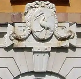 On 29 June 1571, Andreas Grill, burgher in Augsburg received burgher arms in letters patent from a count palatine of the Holy Roman Empire.[5] The name Grill comes from the Italian Grillo, meaning cricket, while the family's coat of arms displays a crane holding a cricket in its bill.[b]