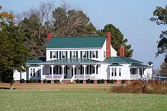 Grimesland Plantation is a historic plantation house located near Grimesland, Pitt County, North Carolina. It was built about 1790, and is a two-story, frame dwelling sheathed in weatherboard and with flanking exterior gable end brick chimneys. It has Greek Revival period flanking one-story, hip roofed wings, a two-story rear addition, and one-story front verandah. Also on the property are a row of frame slave quarters and a stone smokehouse. It was the home of Confederate army general officer Bryan Grimes (1828-1880).[2]