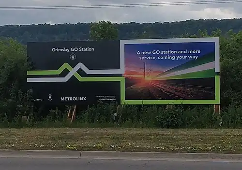 Grimsby GO Station is a proposed commuter rail station on the GO Transit train and bus network in Southern Ontario, Canada. Located in the town of Grimsby in the Regional Municipality of Niagara, it would be a stop on the Lakeshore West line, east of the proposed Confederation GO Station in Hamilton.[1] It was expected to open in 2021[2] and would have been the first station to open in the planned Niagara extension, which will also include stops at St. Catharines and Niagara Falls stations.[2]