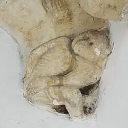 Others are not convinced that the carving represents an imp, believing that it is the figure of a man holding up the beams on his back.[5][6] In May 2021 an item in Grimsby Live, "The truth behind Grimsby's very own legendary imp" expanded the story to include the twisted spire of Chesterfield Parish Church. It said a vicar at Grimsby Minster "has a more logical and historical explanation for the figure suggesting one of the craftsmen who built the Minster carved the figure of a man bending over supporting the church."[7] In September 2021 North East Lincolnshire Council announced that Grimsby Minster was to be part of the "Lincoln Imp Trail", involving 32 painted sculptures inspired by the Lincoln Imp placed at various sites around Lincolnshire in a venture organised by the Lincoln Business Improvement Group.[8][9] Grimsby Minster website makes no mention of the imp.[10]