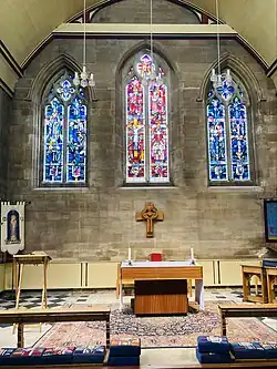 The stained-glass windows are renowned within the Diocese of Lincoln. Those in the south aisle reflect the history of the Anglican Church and those in the north aisle the life of Christ from the Adoration of the Magi to the Last Supper.[4]