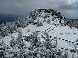 The Großer Arber (German pronunciation: [ˈɡʁoːsɐ ˈaʁbɐ] ⓘ); Czech: Velký Javor, "Great Maple") or Great Arber,[3] is the highest peak of the Bavarian/Bohemian Forest mountain range and in Lower Bavaria, with an elevation of 1,455.5 metres (4,775 ft).[1] As a result, it is known in the Lower Bavarian county of Regen and the Upper Palatine county of Cham as the "King of the Bavarian Forest". Its summit region consists of paragneiss.