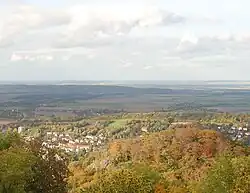 The Großer Burgberg is a ca. 483 m (1,585 ft) high hill on the northern rim of the Harz mountains range, right on the edge of Bad Harzburg in Lower Saxony.