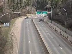 Groat Road is a major roadway in Edmonton, Alberta. It is named after Malcolm Groat, a former Hudson's Bay Company employee who settled in the present-day Groat Estates area in the 1880s.[2] Groat Road is part of a 40-kilometre-long (25 mi) continuous roadway that runs through Sherwood Park, Edmonton, and St. Albert that includes Wye Road, Sherwood Park Freeway, Whyte Avenue, portions of University Avenue and Saskatchewan Drive, and St. Albert Trail. Groat Road functions as a grade-separated parkway between 87 Avenue and 111 Avenue.[1]