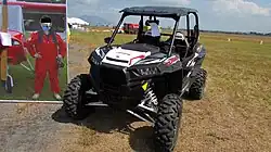 In relation to motorsport, Group T4 is a set of technical specifications for modified production cross-country side-by-side vehicles used in off-road Cross-Country Rallying (also called Rally Raid). The group is governed by the Fédération Internationale de l'Automobile (FIA) and defined in appendix J, article 286a of its International Sporting Code.[1] The vehicles are modified for competition purposes from vehicles manufactured in numbers greater than 250 in a 12 month period. They must be road legal, but typically differ from the 'cars' defined in Group T1 and Group T2 by a much lower minimum weight (900 kg) and no requirement for parts such as a windscreen or windows. The vehicles must be powered by one engine and without driving aids such as traction control or ABS. Though the vehicles do not need to be homologated, a reference vehicle needs to be provided to the FIA for approval.[2]