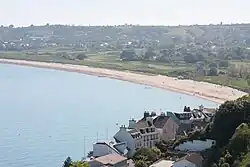 The parish is quite urbanised, with 22% of the parish built-up, but is also quite an agricultural parish. Its mix of land uses can be compared closely to that of St. Lawrence.[6] The parish population is mostly located along the coastal part to the east of La Grande Route des Sablons along the coast, with the 'village centre' of the parish located at Ville-ès-Renauds, which has a number of shops and the parish school. Further inland, the parish rises up to the Mont de Grouville. The parish church and hall are located further inland at the foot of the hill along the main road to St. Helier. The parish also includes the more residential 'village' part of Gorey, with the more touristic 'pier' part in St. Martin.
