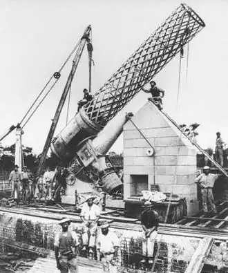After the submarine periscope was invented in 1902, Howard Grubb patented several improvements to their design.[17][9] The Grubb factory began manufacturing the new instruments, which became their primary business by 1914.[17] During the First World War, most British submarines were equipped with a periscope built by Grubb; following the 1916 Easter Rising in Dublin, the periscope workshop was moved to St Albans in 1918 for better security.[17][18] When the military contracts ended and peace returned in 1919, the company struggled to return to profitability. Howard Grubb, then in his 70s, attempted to revive the sale of large telescopes but the company began to lose money.[4] Several telescopes had been delayed or not completed due to the war, such as a 24-inch (0.61 m) reflector for the National Astronomical Observatory of Chile (Santiago), which had been ordered in 1909, partially constructed in 1913, but was not operational until 1925.[5]