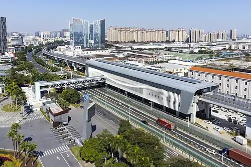 Guangjiao station (simplified Chinese: 广教站; traditional Chinese: 廣教站; pinyin: Guǎngjiào Zhàn; Jyutping: Gwong2gaau3 Zaam6) is an elevated station on Line 3 of Foshan Metro, located in Foshan's Shunde District.[2] It opened on 28 December 2022.[3][4][5]