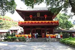 Guangxiao Temple (Chinese: 光孝寺; Jyutping: Gwong1 Haau3 Zi2) is one of the oldest Buddhist temples in Guangzhou, the capital of China's Guangdong Province.[1] As the special geographical position, Guangxiao Temple often acted as a stopover point for Asian missionary monks in the past. It also played a central role in propagating various elements of Buddhism, including precepts school, Chan (Zen), Shingon Buddhism, and Pure Land. In this temple, Huineng, the sixth Chinese patriarch of Chan Buddhism, made his first public Chan lecture and was tonsured, and Amoghavajra, a Shingon Buddhist master, gave his first teaching of esoteric Buddhism.[2] Many Buddhist scriptures were also translated here, including those translated by Yijing and the Shurangama-sūtra translated by Paramitiin (般剌密諦).[2]