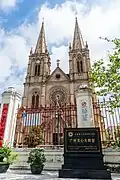The Sacred Heart Cathedral, properly the Cathedral of the Sacred Heart of Jesus and also known as the Stone Chamber or Stone House by locals,[2] is a Gothic Revival Roman Catholic cathedral in Guangzhou, China. It is the seat of the Archbishop of Guangzhou. The cathedral is located at 56 Yide Road (一德路56号), on the north bank of the Pearl River at the heart of the old district. It is one of the few cathedrals in the world to be entirely built of granite, including all the walls, pillars, and the twin towers.