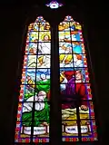 Since its completion in 1888, the cathedral has undergone three major repairs. The first time was in the 1920s and 1930s, when then Bishop Antoine-Pierre-Jean Fourquet, M.E.P. (魏暢茂), replaced the timber roof, beams and steel staircases with concrete ones. A second repair took place after the Cultural Revolution in the 1980s. Recently between 2004 and 2006 the largest repair works were carried out. The church paid ¥3 million and local Catholics donated about ¥2 million for the ¥26 million project, while the rest was covered by the local government. The aim of the restoration was to solve the problem of leakage by rebuilding the whole roof, which was the most challenging task as the rib vault below needed to remain untouched and intact. Most of 19th century stained glass was damaged during wartime and smashed in the Cultural Revolution, so new stained glass was ordered from a Philippine company specialising in church glass.[8] It resulted in the new stained glass carrying English descriptions instead of Latin and French texts of the original French glass. New lighting, audio and CCTV systems were also installed. The original French mechanical clock has long gone, so a new 750,000-yuan clock tailored for the clock tower was ordered from a Chinese clock factory.[8]
