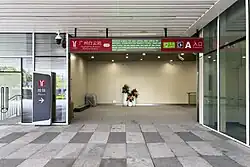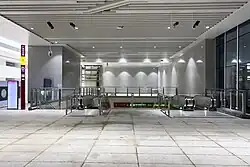 The station has 9 entrances/exits. Among them, Exits F, G and H, located in the arrival concourse on the first underground floor of the national railway station is entry only (into the metro station), and one-way security check measures are implemented so that passengers can take the metro without having to go through security again after exiting the national railway station.[7][8]