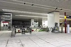 The concourse of the station, located on the second underground floor, is equipped with electronic ticket vending machines and AI customer service centers. There are also candy and snack bars and various self-service facilities. There is an automated external defibrillator next to the station control center. [6]