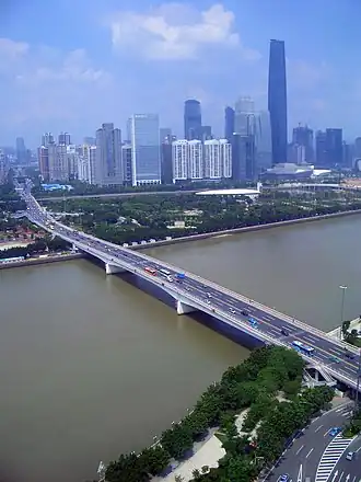 Guangzhou Bridge with Zhujiang New Town and the Guangzhou Opera House in the background (September 2010) | |