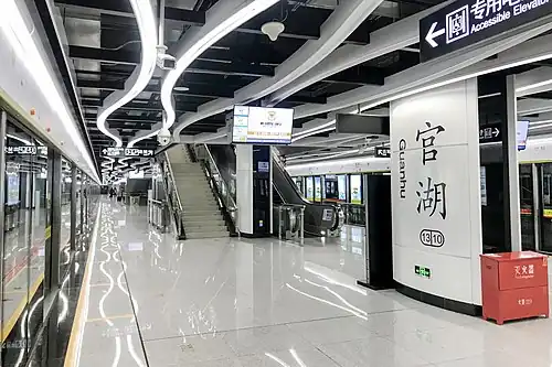 Guanhu station (Chinese: 官湖站; pinyin: Guānhú Zhàn; Jyutping: gun1wu4 zaam6), is a station of Line 13 of the Guangzhou Metro. It started operations on 28 December 2017.[1]