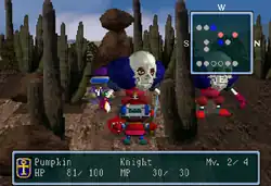 The player moves a party around a world map consisting of distinct nodes. Most nodes are hostile territory (called fields in the game), very much like in Final Fantasy Tactics. When the party enters hostile territory, the party moves around as a single character in an over-the-shoulder perspective until they come in range of an enemy. The party then moves into a battle formation that the player designs beforehand. Unlike most console RPGs, the game does not cut to a separate screen or location for battles. Attacks have various ranges and area of effects. Turns are defined on a unit-by-unit basis, similarly to Shining Force: The Legacy of Great Intention. To advance past a hostile territory, the player must defeat all the enemies in that territory. Some side territories (called fields in the game) cannot be cleared and can be used to continue leveling characters. The player may also leave a territory any time that the party is not engaging an enemy, in which case all enemies will have respawned when the party returns to that territory.