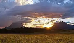 It is on the geological Guiana Shield craton, and is the Venezuelan part of the biogeographic Guayana Highlands and their tepuis (mesas).