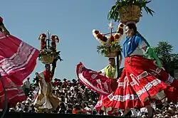 Women dancing the folk dance, "Flor de piña", in the Guelaguetza of 2008, one of the most characteristic dances associated with the Guelaguetza.
