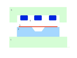 Rubber pad forming can be accomplished in many different ways, and as technology has advanced, so have the applications for this simple process. In general, an elastic upper die, usually made of rubber, is connected to a hydraulic press. A rigid lower die, often called a form block, provides the mold for the sheeted metal to be formed to. Because the upper (male) die can be used with separate lower (female) dies, the process is relatively cheap and flexible. The worked metal is not worn as quickly as in more conventional processes such as deep drawing,[3] however, rubber pads exert less pressure in the same circumstances as non-elastic parts, which may lead to less definition in forming, and rubber pads wear more quickly than steel parts.[3]