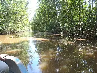 The mangroves lie between the sea and areas of Orinoco Delta swamp forests, Guianan moist forests and Guianan freshwater swamp forests.[2] The Guianan mangroves ecoregion is part of the 31,855 square kilometres (12,299 sq mi) Guianan-Amazon Mangroves global ecoregion, which also contains the Amapa mangroves, Pará mangroves and Maranhão mangroves ecoregions.[3]