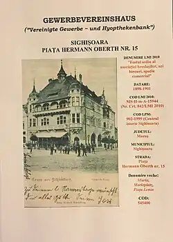 The Guilders' Association House (Romanian: Casa Asociației Meșteșugărești; German: Gewerbevereinshaus) is a historic monument located in Sighișoara, Mureș County, Romania.