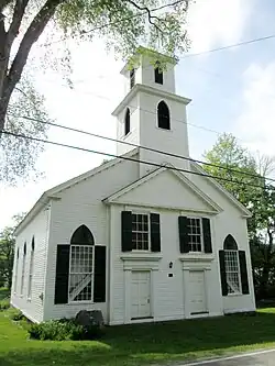 The church was built in 1837, using materials salvaged from an earlier meetinghouse. It was erected by a Universalist congregation at a cost of $2409, and represents one of the state's earliest examples of Gothic religious architecture. Attendance at the church was always somewhat intermittent, and the congregation's size generally followed a downward trend in the town's population. In 1977 the small congregation gave the building to the local historical society. It now maintains the building, and opens it to the community as a social and performance venue.[2]