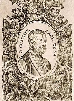 Guillaume Costeley [pronounced Cotelay] (1530, possibly 1531 – 28 January 1606) was a French composer of the Renaissance. He was the court organist to Charles IX of France and famous for his numerous chansons, which were representative of the late development of the form; his work in this regard was part of the early development of the style known as musique mesurée. He was also one of very few 16th century French composers of music for keyboard. In addition, he was a founding member of the Académie de Poésie et de Musique along with poet Jean-Antoine de Baïf, and he was one of the earliest composers to experiment with microtonal composition.