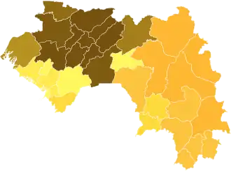 ![]() ![]() Condé: 50-60% 60-70% 70-80% 80-90% >90% Diallo: 50-60% 60-70% 70-80% 80-90% >90% | |||||||||||||||||