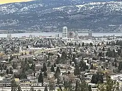 Nearby communities include the City of West Kelowna (also referred to as Westbank and Westside) to the west, across Okanagan Lake; Lake Country and Vernon to the north; Peachland to the southwest; and Summerland and Penticton to the south.