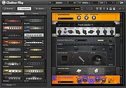The Guitar Rig environment is a modular system, providing capabilities for multiple amplifiers, effects pedals and rack mounted hardware. Primarily designed for electric guitar and bass, the software uses amplifier modeling to allow real-time digital signal processing in both standalone and DAW environments via plug-in (VST/DXi/RTAS/AU).[1][2] The software simulates a number of devices such as preamplifiers, cabinets and microphones under pseudonyms (such as renaming the Shure SM57 as the "Dynamic 57").