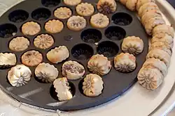 Gukhwa-ppang (Korean: 국화빵; lit. chrysanthemum bread) is a flower-shaped pastry stuffed with sweetened red bean paste.[1][2][3] It is a warm street food sold throughout Korea. It is grilled in an appliance similar to a waffle iron, but with flower-shaped molds.