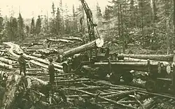 Lithuanian deportees preparing logs for rafting on the Mana River