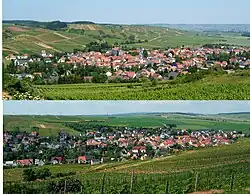 As early as 1163, the landhold of Hetdenesheim (Heddesheim) had its first documentary mention and already by 700 years ago it was one of the greater villages in what is now the Bad Kreuznach district. Under Revolutionary/Napoleonic French rule, Heddesheim was grouped into the Mairie ("Mayoralty") of Langenlonsheim in 1800. The village, now constituent community of Guldental, Waldhilbersheim is likewise very old. Beginning as long ago as 1200, it began to crop up in documents. In 1800, however, it was grouped into the Mairie of Windesheim, and in 1939 into the Amt of Langenlonsheim. Today's Ortsgemeinde of Guldental was formed in the course of administrative restructuring in Rhineland-Palatinate on 7 June 1969 through the merger of the hitherto self-administering municipalities of Heddesheim (Nahe) with its outlying centre of Breitenfelser Hof and Waldhilbersheim.[4] Guldental thus became the biggest winegrowing community on the Nahe, with 417 ha of land given over to vineyards. The vineyards to the south run for 6 km along the Guldenbach. Winegrowing in this area is witnessed quite early on.[5]