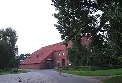 A Gulf house (German: Gulfhaus), also called a Gulf farmhouse (Gulfhof) or East Frisian house (Ostfriesenhaus), is a type of byre-dwelling that emerged in the 16th and 17th centuries in North Germany.[1] It is timber-framed and built using post-and-beam construction. Initially Gulf houses appeared in the marshes, but later spread to the Frisian geest. They were distributed across the North Sea coastal regions from West Flanders through the Netherlands, East Frisia and Oldenburg as far as Schleswig-Holstein (as a variant called the Haubarg). This spread was interrupted by the Elbe-Weser Triangle which developed a type of Low German house instead, better known as the Low Saxon house.