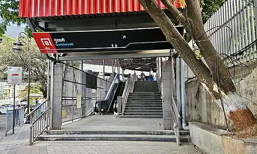 Gundavali is the elevated southern terminal metro station on the North-South corridor of the Red Line 7 of Mumbai Metro in Mumbai, India. This metro station was inaugurated on 20 January 2023 by Prime Minister Narendra Modi. [1][2][3]