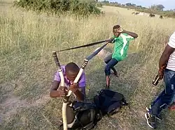![]() A picture of children playing with catapult. Photo by Kiiza Wilson | |