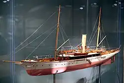 In 1903, Gunilda was purchased by oil baron William L. Harkness of Cleveland, Ohio. Harkness was a member of the New York Yacht Club. When he purchased Gunilda, she was officially registered in New York City and became the new flagship of the New York Yacht Club. In 1903, Gunilda's home port was Philadelphia, Pennsylvania, however, in 1904, it became New York City.[14] Under the ownership of Harkness, Gunilda visited several parts of the world, making multiple trips around the Atlantic Ocean and the Caribbean.[3][8][10][13] In 1910, Harkness brought Gunilda to the Great Lakes to perform an extended cruise.[3][15]