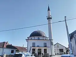 In contemporary history the first Muslim refugees from eastern Bosnia settled in Gunja in 1942 during World War II in Yugoslavia.[4] They returned to Bosnia, but once they witnessed the extent of destruction some of them returned once again to Gunja.[4] Some 50 Muslim families from Velika Kladuša settled in Gunja after the Cazin rebellion.[5] During the existence of the Socialist Federal Republic of Yugoslavia Muslim community in Gunja increased to 2,500.[4] Seventy Muslim families moved to Gunja from Srebrenica in the 1970s.[5] Gunja was an attractive location for Muslim settlers from Bosnia as it functioned as a de facto suburb of the city of Brčko across the Sava river.[4] Local džemat was established in 1957 and was led by Abdurahman ef. Hodžić from Ustikolina,[5] who later returned to Ustikolina for health reasons. He was succeeded by Hazim ef. Hodžić from Vražići (who was earlier a prisoner for his membership in Young Muslims) but he also left for Bijeljina leading local community to unite with the one in the Atik Mosque in Brčko.[5] At the same time the community decided to form an initiative to build a mosque and started the process once all permissions were issued.[5] 3134 square meters of land for the new mosque was granted by the Čandić family.[6] The Mosque in Gunja was completed in 1969 after 14 months and functioned as the only active mosque in Croatia until Zagreb Mosque was completed in 1987.[5] Current dome of the Gunja Mosque was constructed in 1999 based on the Neo-Ottoman design done by Faruk Muzurović which strictly followed historical examples of Ottoman architecture in Balkans leading to some criticism over the lack of creativity.[5] The Mosque in Gunja was damaged during the 2014 Southeast Europe floods. The site was visited by ambassadors of Azerbaijan, Indonesia and Iran to Croatia who were led by mufti of Zagreb.[7] While local religious leadership requested and expressed dissatisfaction over the lack of reconstruction funding from the Government of Croatia, object was ultimately reconstructed by an €165,000 donation of the Republic of Turkey.[4] Since 2017 the mosque organizes annual Evenings of Spiritual Music in which students from elementary school in Gunja as well as representatives of Serbian Orthodox and Roman Catholic community from the village and the rest of the region take part.[8] On the occasion of 50th anniversary of the Gunja Mosque local Muslim religious leader imam Idriz ef. Bešić received life achievement award of the Vukovar-Srijem County for 38 years of his service in Gunja.[9]