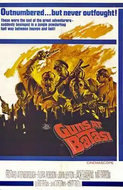 Guns at Batasi is a 1964 British drama film starring Richard Attenborough, Jack Hawkins, Flora Robson, John Leyton and Mia Farrow. The film is based on the 1962 novel The Siege of Battersea by Robert Holles and was directed by John Guillermin. Although the action is set in an overseas colonial military outpost during the last days of the British Empire in East Africa, filming was done at Pinewood Studios in the United Kingdom.