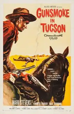 Gunsmoke in Tucson is a 1958 American CinemaScope Western film directed by Thomas Carr and written by Paul Leslie Peil and Robert L. Joseph. The film stars Mark Stevens, Forrest Tucker, Gale Robbins, Vaughn Taylor, John Ward and Kevin Hagen. The film was released on December 7, 1958, by Allied Artists Pictures.[1][2][3]