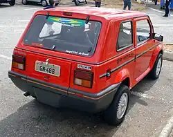 The Gurgel BR-800 is a Brazilian city car produced by Gurgel between 1988 and early 1992. The project started under the acronym CENA, meaning "National Economical Car" ("Carro Econômico NAcional", in Portuguese), designed to be essentially a small car for urban daily use. It received great attention and good reviews from critics, regarding the mechanic solutions, comfort, drivability and stability.[1] When it was introduced in September 1987, the car was named the Gurgel 280 but by the time sales started it was changed to the BR-800.[2] The car could only be purchased if the buyer also bought 750 shares in Gurgel, making it considerably more expensive than the much bigger and more capable Chevrolet Chevette, the then cheapest new car available in Brazil.[3]