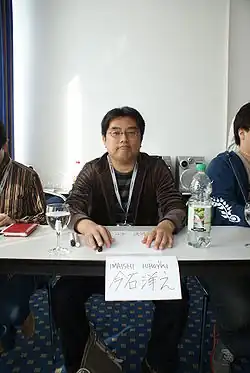 Gurren Lagann was first announced in July 2006 with Aniplex and Konami assisting Gainax in its making. Konami director Koichi Natsume suggested possibilities of the series getting multiple sequels.[6] The series was directed by Hiroyuki Imaishi, who was a fan of the mecha genre, having previously done animation work for Neon Genesis Evangelion, and ever since he started working he had wanted to work in a mecha series.[7] After working on Re: Cutey Honey with Kazuki Nakashima, Imaishi appointed him as the writer, believing him to be the best choice. Imaishi was surprised with how much material Nakashima could condense into 27 episodes. Imaishi had finished writing the main storyline long before reaching the end which facilitated the staff in making the episodes.[7] According to Gainax president Hiroyuki Yamaga the series was in planning phases for a long time. Animation producer Yasuhiro Takeda used the time to research how the characters would live underground, although this aspect is used only briefly. Once the series started production, the team did not have much time to research materials.[8]