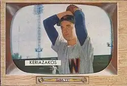 Constantine Nicholas "Gus" Keriazakos (July 28, 1931 – May 4, 1996) was an American professional baseball player. He was a 6 ft 3 in (1.91 m), 187 lb (85 kg) right-handed pitcher who worked in 28 games in the Major Leagues in 1950 and 1954–1955 for the Chicago White Sox, Washington Senators and Kansas City Athletics.