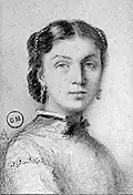 Moreau never married and very little information is known about his personal and romantic relationships. In the past some biographers speculated that he was gay, largely inferred from the fact that he was a bachelor, a lack of information regarding women in his life, and the sometimes effeminate or androgynous appearance of male figures in some of his paintings. However, more recent research and documents revealed a relationship with Adelaide-Alexandrine Dureux (b. Guise, 8 November 1835 – d. Paris, March 1890) that lasted over 30 years. Moreau apparently met Alexandrine soon after his return from Italy and in following years he produced many drawings and watercolors of her, as well as romantic caricatures of the two of them walking on clouds together. He subsidized an apartment for her on Rue Notre-Dame de Lorette, just a few blocks from the townhome where he lived with his parents. Their relationship was very discreet and known by only a few in his closest circle. His mother was aware of their relationship and apparently fond of her, as indicated by a stipulation in her will that provided an annuity for Alexandrine should Gustave die before her. He designed her tombstone, engraved with their interlaced initials, A and G, which is located near his family plot where he was interred with his parents.[3]: 156–161 p. [4]: 48–51, 93 p. [7]