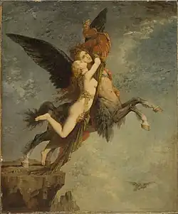 Gustave Moreau (French: [ɡystav mɔʁo]; 6 April 1826 – 18 April 1898) was a French artist and an important figure in the Symbolist movement. Jean Cassou called him "the Symbolist painter par excellence".[1]: 110 p. He was an influential forerunner of symbolism in the visual arts in the 1860s, and at the height of the symbolist movement in the 1890s, he was among the most significant painters. Art historian Robert Delevoy wrote that Moreau "brought symbolist polyvalence to its highest point in Jupiter and Semele."[2]: 147 p. He was a prolific artist who produced over 15,000 paintings, watercolors, and drawings. Moreau painted allegories and traditional biblical and mythological subjects favored by the fine art academies. J. K. Huysmans wrote, "Gustave Moreau has given new freshness to dreary old subjects by a talent both subtle and ample: he has taken myths worn out by the repetitions of centuries and expressed them in a language that is persuasive and lofty, mysterious and new."[2]: 78 p. The female characters from the Bible and mythology that he so frequently depicted came to be regarded by many as the archetypical symbolist woman. His art (and symbolism in general) fell from favor and received little attention in the early 20th century but, beginning in the 1960s and 70s, he has come to be considered among the most paramount of symbolist painters.