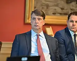 In January 2020, after Prince George's County Executive Angela Alsobrooks and Baltimore mayor Jack Young expressed concern about the cost of the Blueprint for Maryland's Future, Guzzone promised to get "every county and city" on board with the funding formulas in the bill.[33] Legislators would later amend the bill's funding formulas to lessen its impacts on poorer areas of the state, which decreased the bill's cost to Prince George's County to $183 million and to Baltimore to $170 million by 2030.[34] Guzzone also supported legislation to creating a tax on online advertising and expanding the state sales tax to include online streaming services,[35] and an amendment that would limit the Blueprint's implementation if state revenues dropped by more than 7.5 percent.[36]