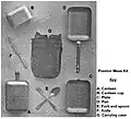 Preston's other lasting contribution was his 1895 invention of the Preston Mess Kit.[25] The kit included two mess pans or plates that fit together in clamshell pattern, eating utensils, and canteen.[25] It was compact and lightweight enough to be carried over the shoulder in a small leather or canvas case.[25] The Preston Mess Kit proved popular with civilian campers, and a version of it was later retailed by Abercrombie & Fitch.[25] Preston's mess kit remained in army use until after World War II, and subsequent kits retained the elements of Preston's design.[26]