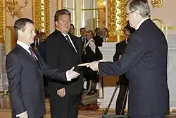 Trouveroy presenting his credentials to Dmitry Medvedev in October 2009.