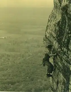 Waterman began climbing in the fall of 1963, prompted by a series of articles in Sports Illustrated by Jack Olsen on efforts to climb the North Wall of the Eiger that were later published as The Climb Up to Hell.[12] Waterman signed up for rock climbing instruction offered by the Appalachian Mountain Club at the cliffs 90 miles (140 km) north of Times Square called the Shawangunks. He had discovered the White Mountains in New Hampshire as well and often took his two older sons along on multi-day trips.[13]