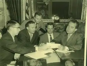 After Nixon lost the 1960 presidential election, Guy received an offer to write speeches for the president of General Electric in New York City. Connections between corporate and political work being somewhat fluid at the time, he was asked to write a first draft of a speech for Dwight D. Eisenhower when the ex-president headed Manufacturers Hanover Trust Company.[11]